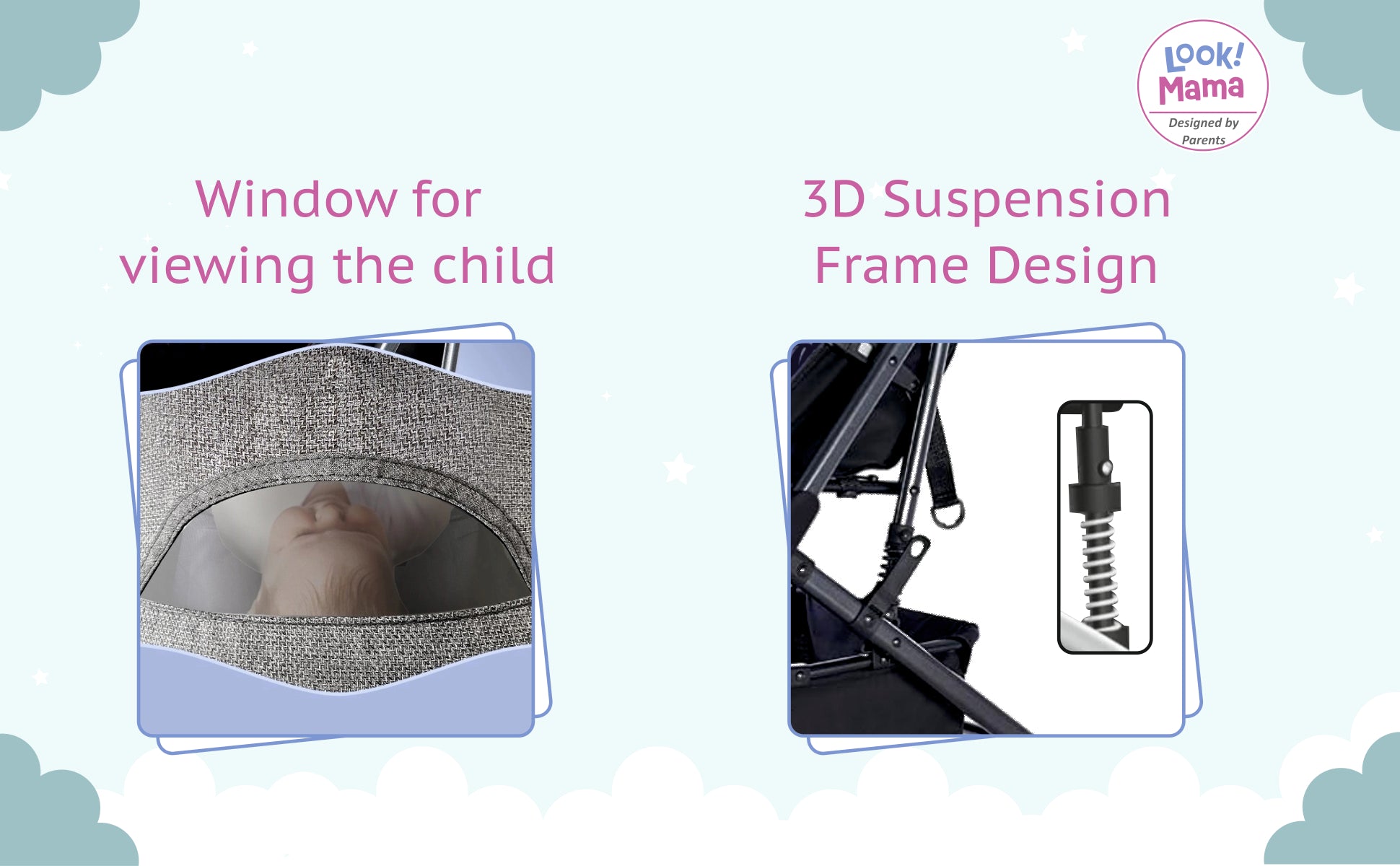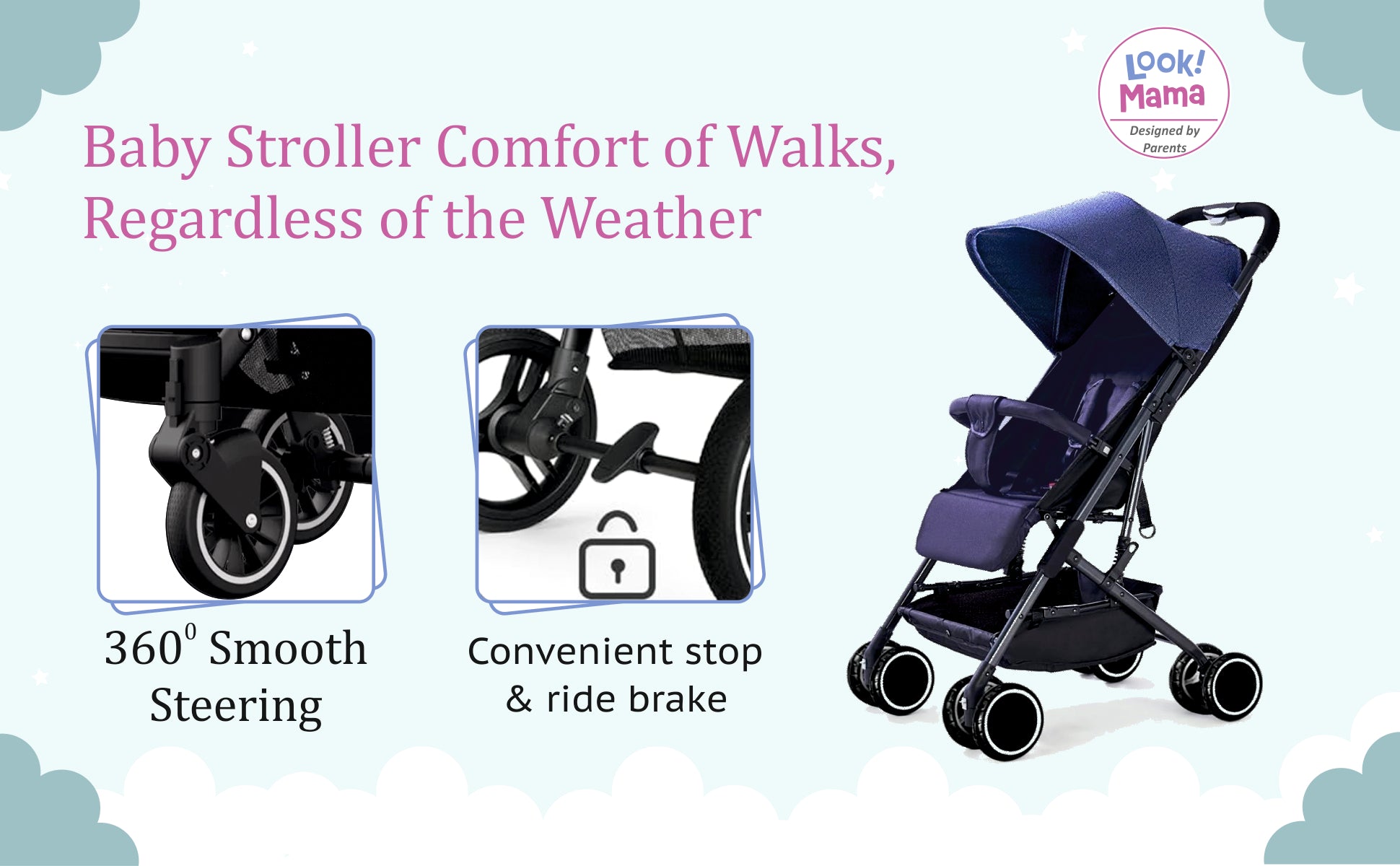 - Stylish & Protected Wheels: Wheel covers not only add a touch of style but also protect the wheels, ensuring durability and a chic appearance wherever you go. Enjoy exceptional shock absorption in the wheels, providing your baby with a comfortable and stable ride on various terrains. Empowers you with control and safety by easily stopping the stroller when needed