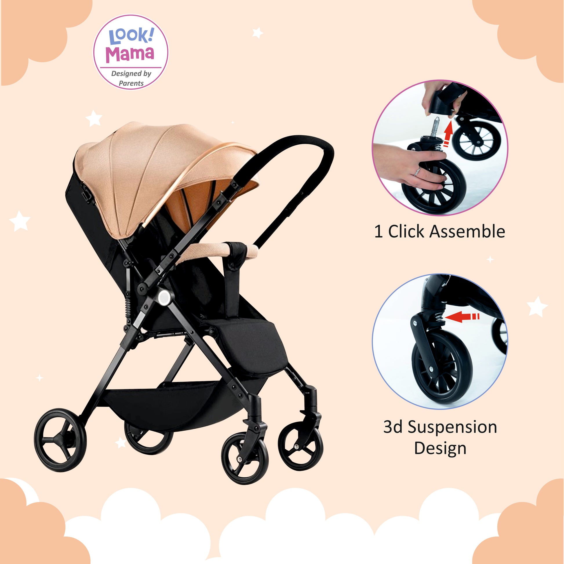 - Smooth Sailin' Suspension Wheels: Glide effortlessly over rough terrain, ensuring your little one's ride is as smooth as can be. Built-in suspension means bumps and lumps won't bother your baby, offering ultimate comfort on any adventure.