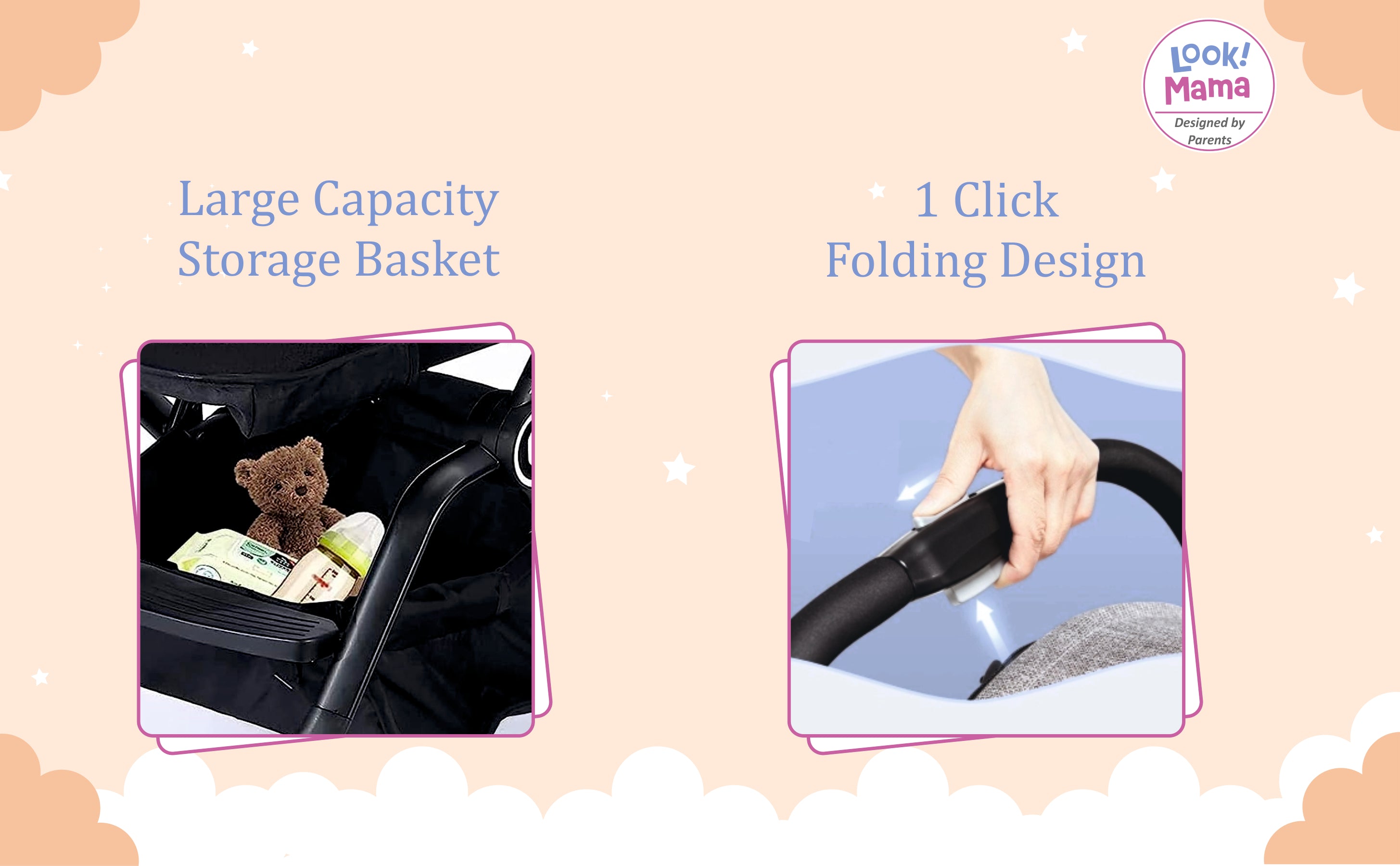 - Fold 'n' Roll - Effortless Pack 'n' Go: Say goodbye to complicated folding techniques with our easy-to-use folding mechanism. Simply pull the strap and watch as your stroller folds down effortlessly, ready to hit the road or tuck away for storage in seconds.