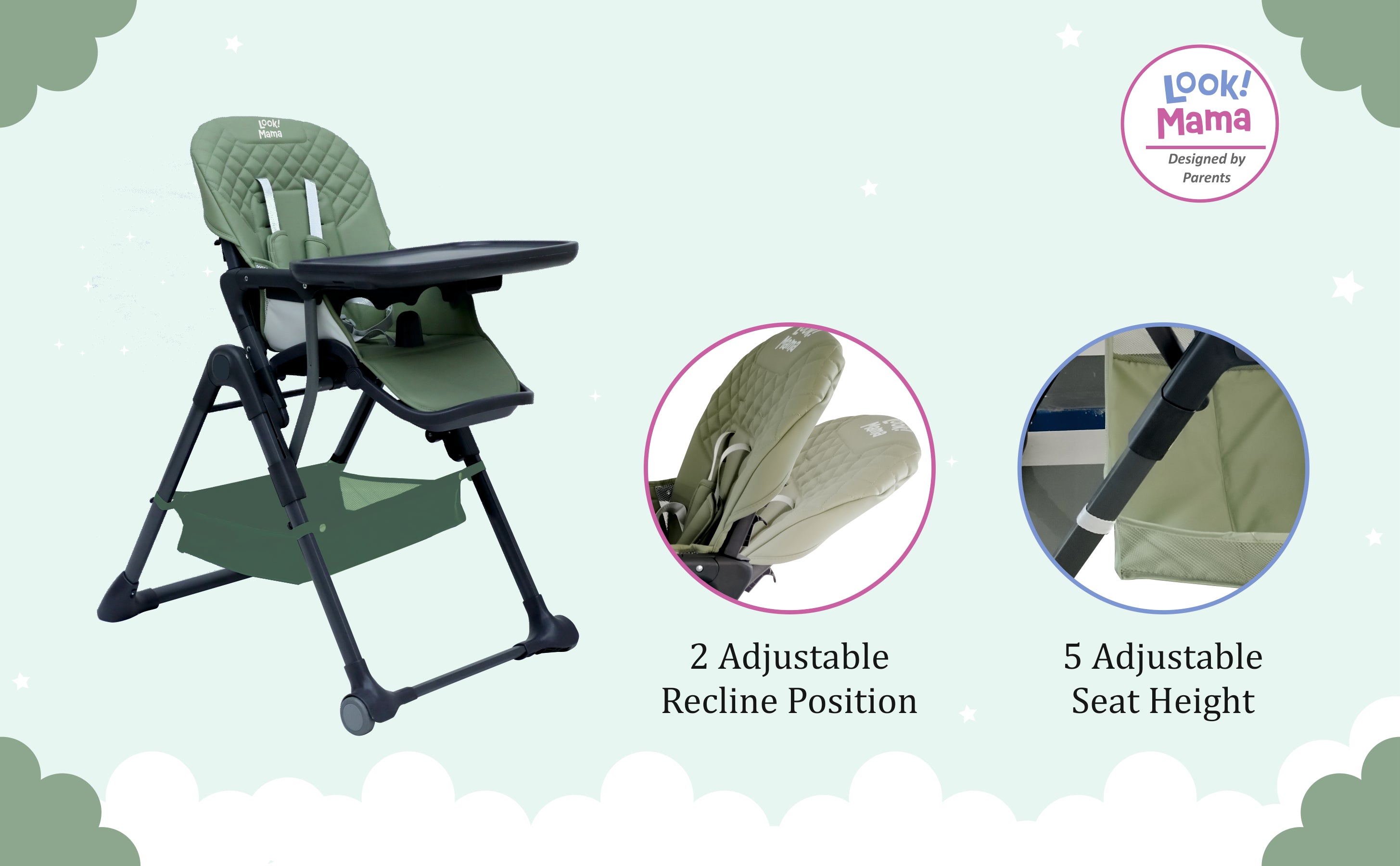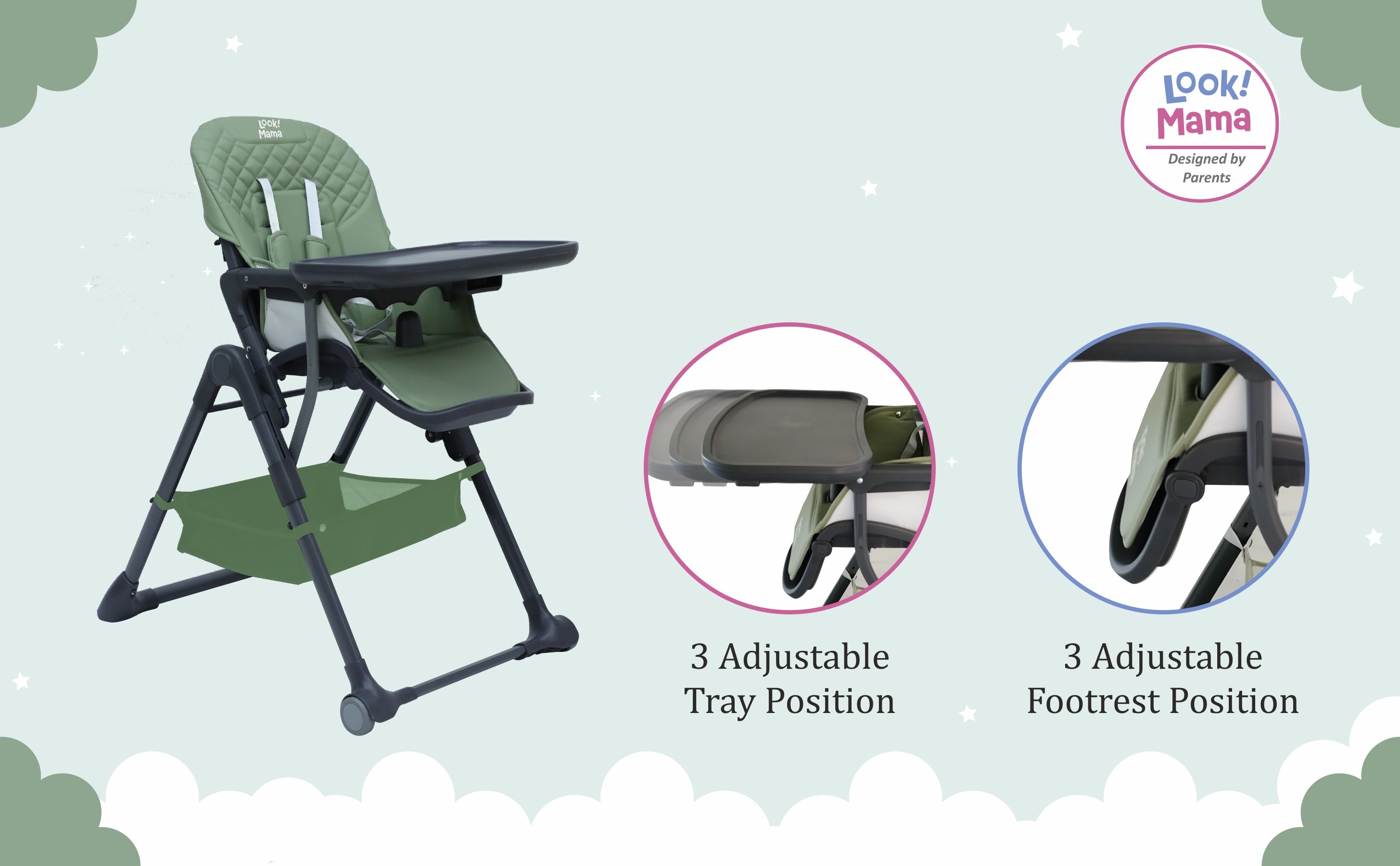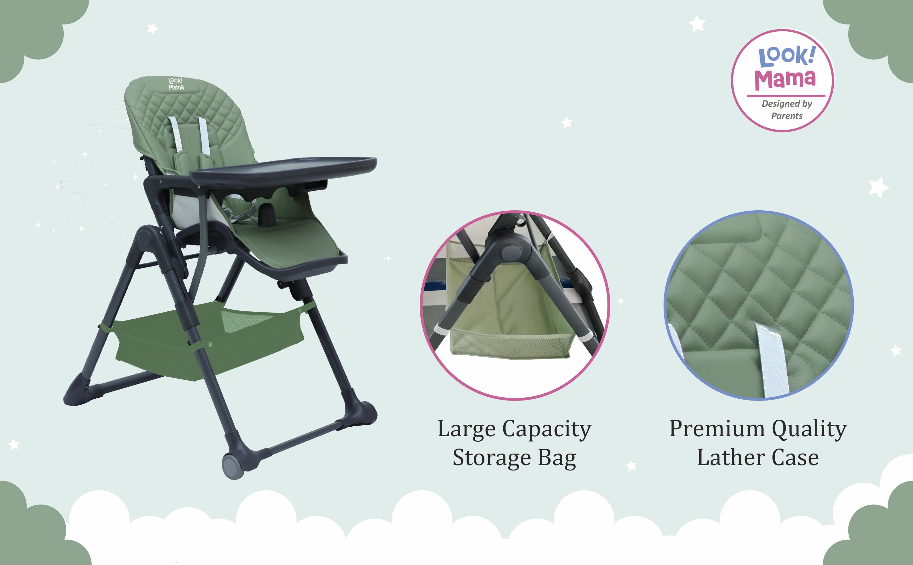 - Simple Fold-and-Go Magic: Uncomplicate your life with our high chair's nifty folding trick. Just fold it up and stash it away effortlessly – a game-changer for parents on the move.