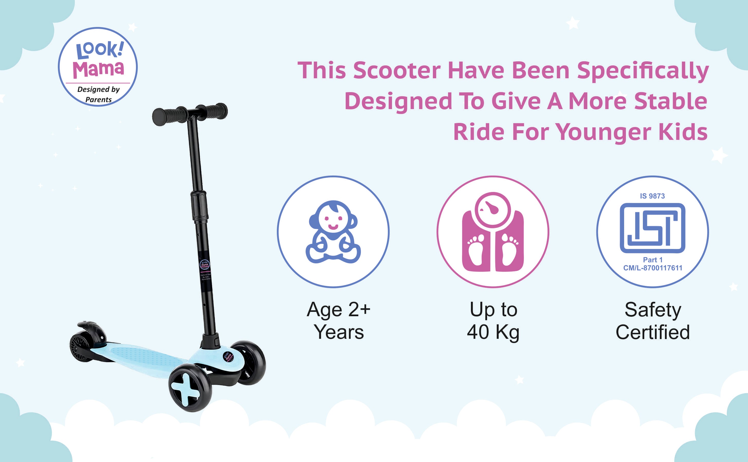 - Suggested Suitable Age: 2 to 7 years. This is a 3 wheel scooter, which is more suitable for kids below 7 years, as it gives more balance. This is an ideal choice if the kid has never used such a scooter before. This is NOT suitable for kids above 7 years of age.