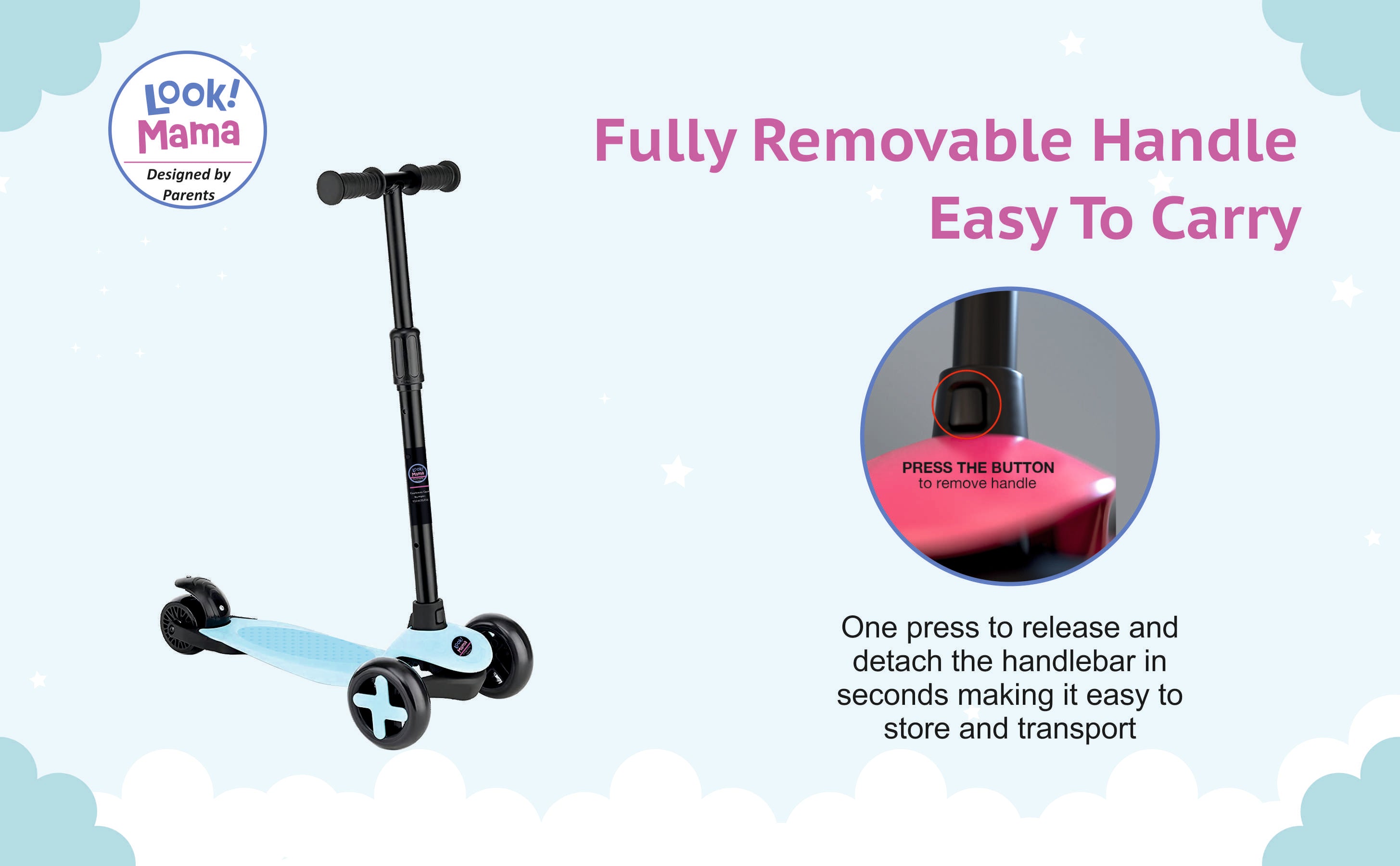 - Stability: The wheels of this scooter have been specifically designed to give a more stable ride for younger kids because they are still learning to ride the scooter and balance it. It uses PVC wheels have lesser speed as compared to the PU wheels used in 2 wheel scotter which are sutable for elder kids.