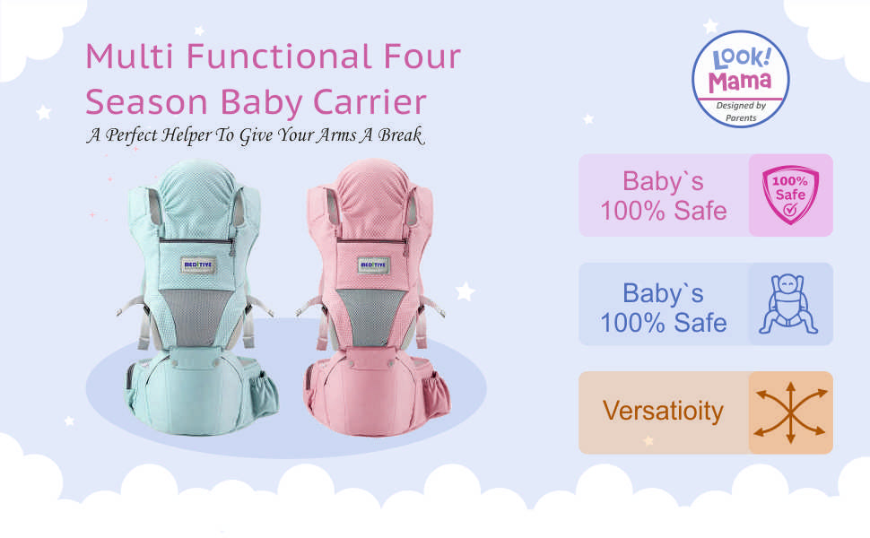 - 4 carrying position modes: Chest way, kangaroo style, back carry, cross arm carry for feeding. Easy to operate and adjust it, flexible carrying position. Extra padded shoulder straps and a supportive waist belt evenly distributes the weight of the child. Easy to get in and out your lovely baby with this Amazing Hind baby carry bag.