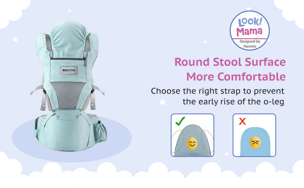 - MEDITIVE baby carrier bag is made from premium quality fabric and comes with padded shoulder and waist straps. This baby carry sling is compatible for maximum 36 inches waist size for parents. If the waist size of parent is more, then this is not suitable